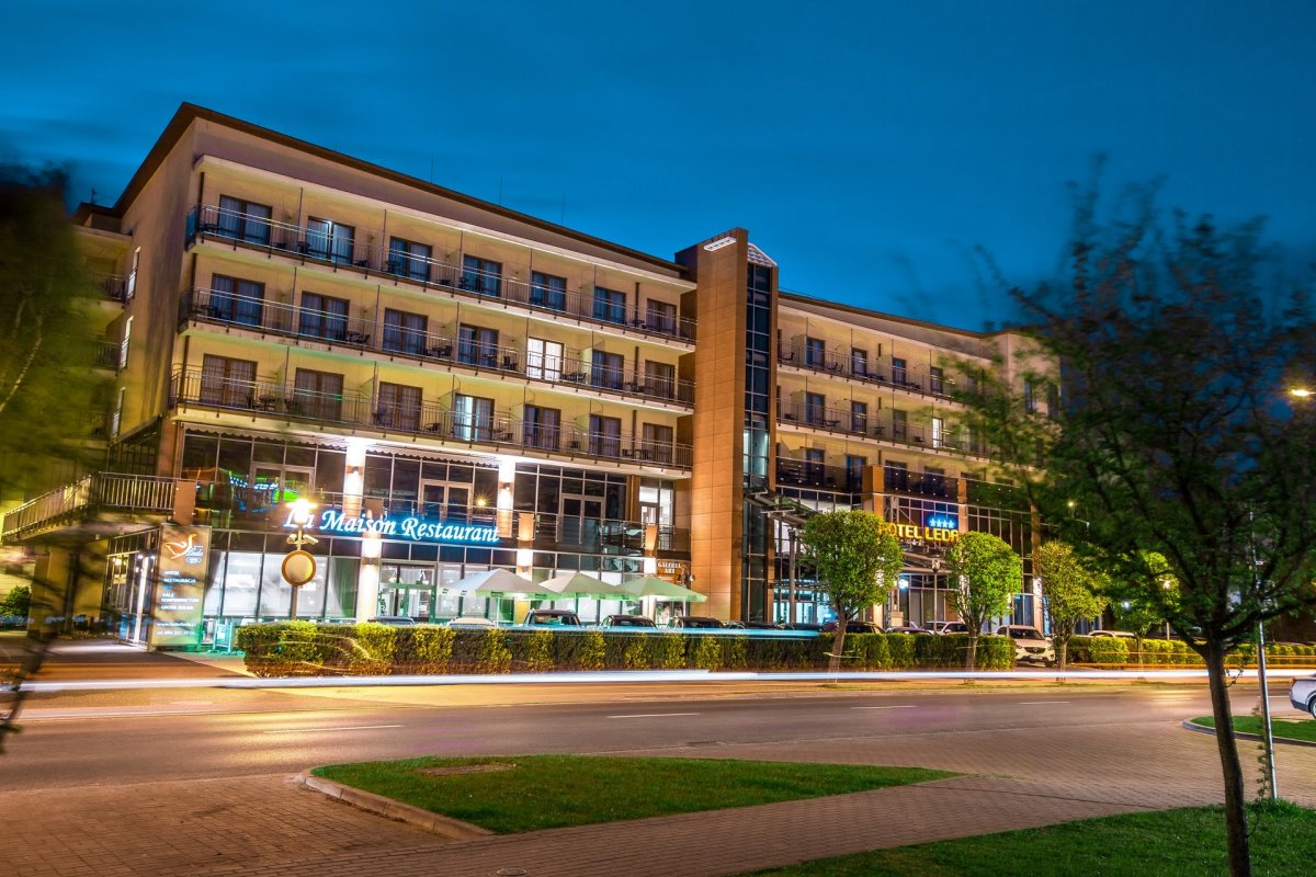 Das moderne Boutique- & Wellnesshotel Leda Spa ist etwa 1 Kilometer vom Stadtzentrum sowie 250 Meter vom Strand entfernt und liegt am Ende des Kurviertels von Kolberg in der Nähe des Amphitheaters.